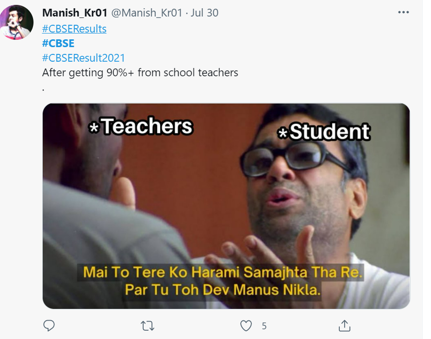 The CBSE board surprised the students on social media with some memes to notify students about the result. They used a Dilwale Dulhania Le Jayenge meme to announce the time of the results. This time record 99.37% has passed the exam with 70000 students scored above 95% !